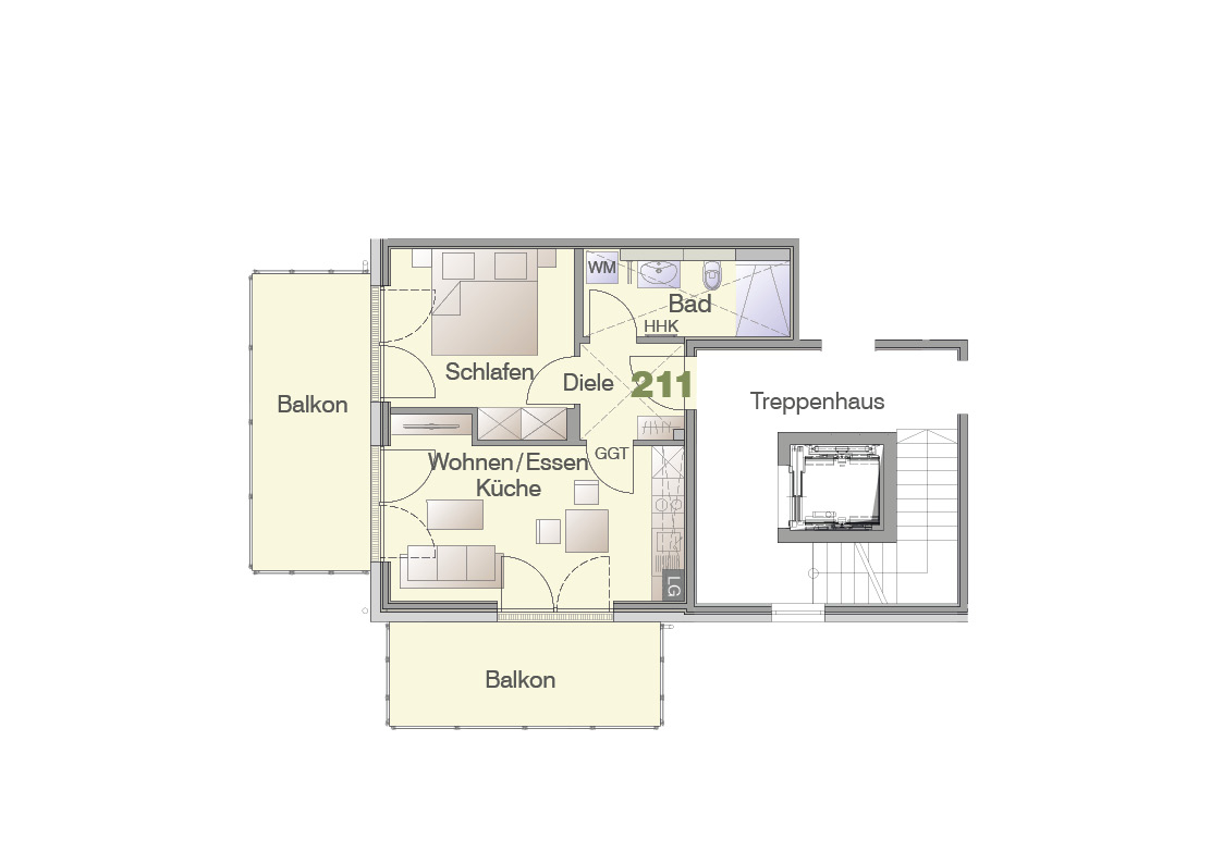 | 211 | Obergeschoss | 50,32 m² | 2- Zimmer | 382.000 € | 28.000 € |