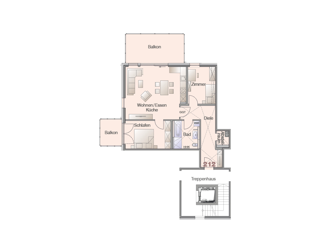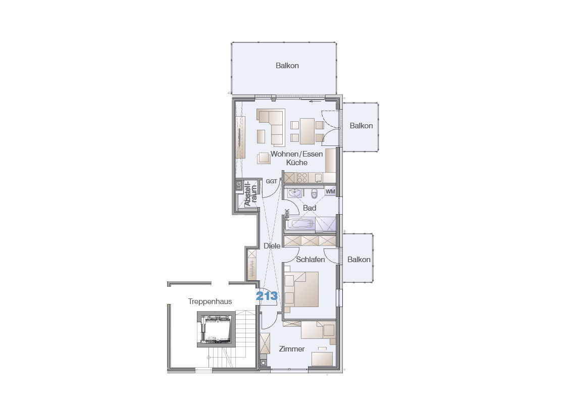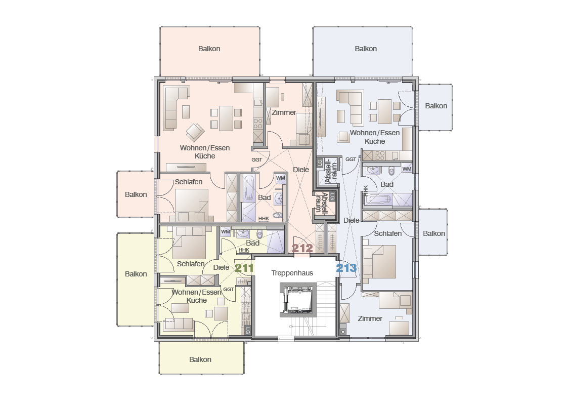 | 213 | Obergeschoss | 89,10 m² | 3- Zimmer | 667.000 € | 28.000 € |