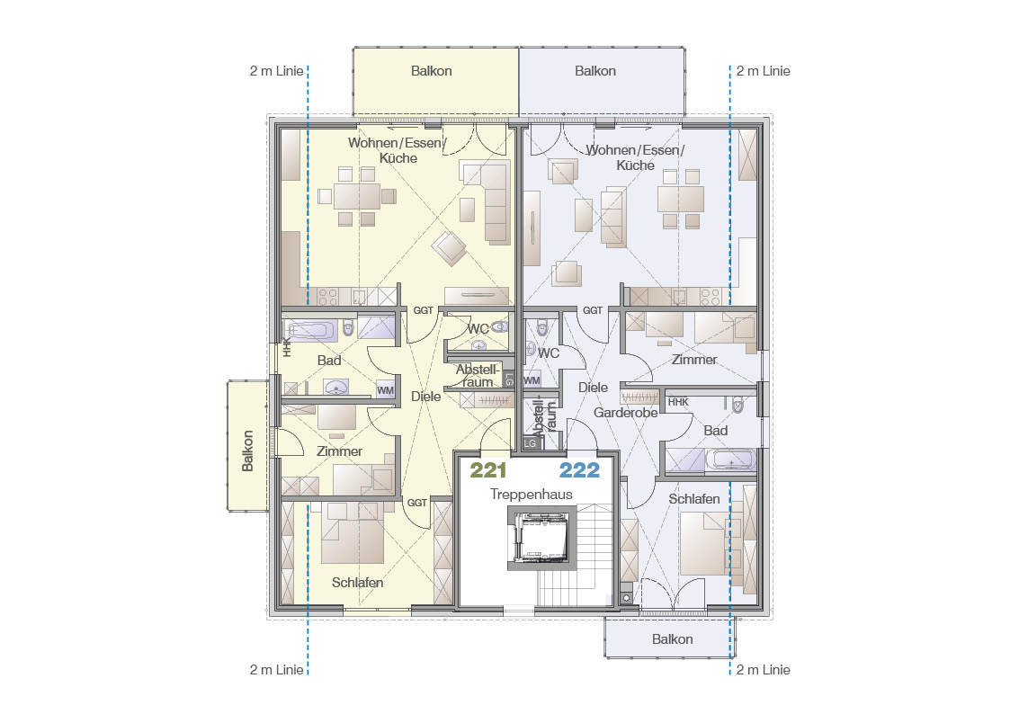 | 222 | Dachgeschoss | 99,70 m² | 3- Zimmer | 793.000 € | 28.000 € |