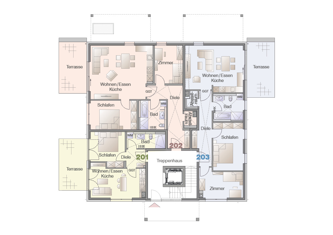 | 203 | Erdgeschoss | 82,10 m² | 3- Zimmer | 571.000 € | 28.000 € |