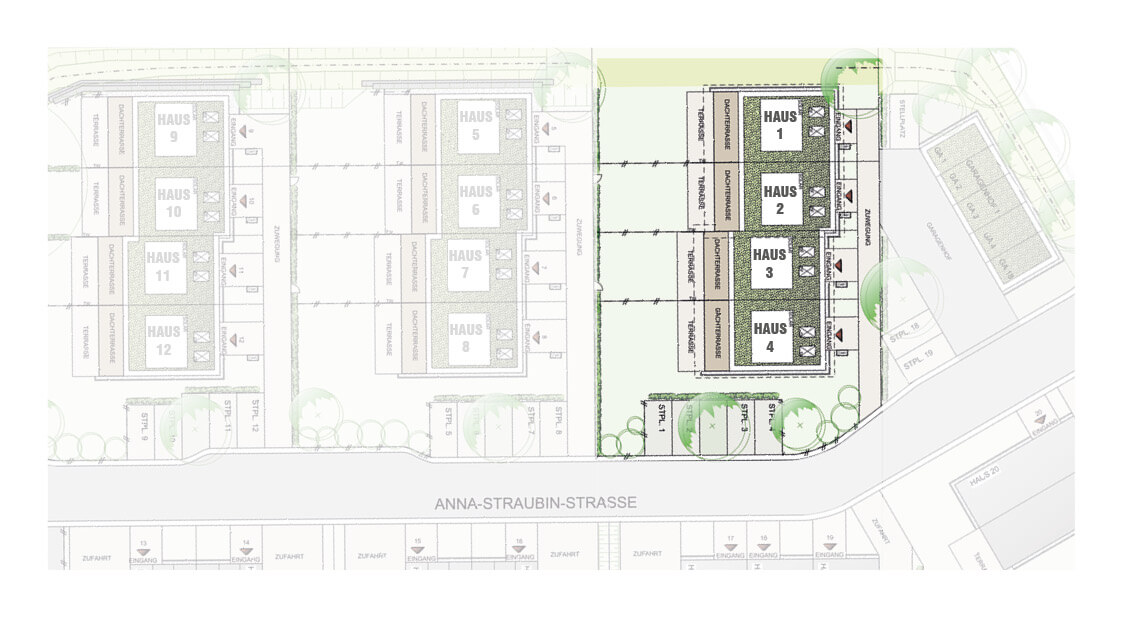 Neubau von 12 Reihenhäusern mit Keller, Garage und Stellplatz | 87437 Kempten-Lenzfried, Anna-Straubin-Straße
